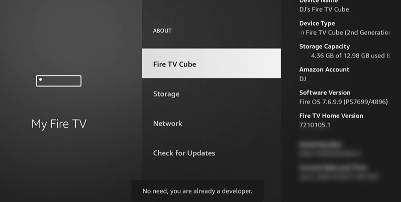 Can’t find Developer Options? Go to Settings → My Fire TV → About, then click your FireStick device name seven times in a row. Developer Options appears after that.