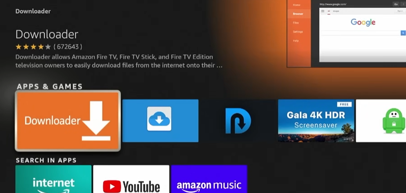 Open the search option from your FireStick home screen.Search for Downloader it’s made by AFTVnews. You can install the app for free through the Amazon App Store. Install it normally.